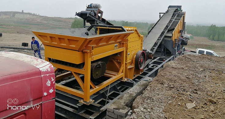 移動式破碎站主破碎設(shè)備為破碎機(jī),物料經(jīng)給料機(jī)均勻輸送到破碎機(jī)內(nèi),被破碎機(jī)初步破碎以后由圓振動篩構(gòu)成閉路系統(tǒng),實現(xiàn)物料的循環(huán)破碎,符合粒度要求的物料由輸送機(jī)輸出,從而達(dá)到生產(chǎn)目的。移動式破碎站還可以根據(jù)實際生產(chǎn)需要去除圓振動篩,而直接對物料進(jìn)行初步破碎,然后配合其他破碎設(shè)備進(jìn)行具體的操作,方便、靈活。
