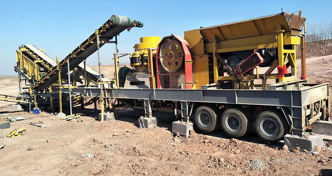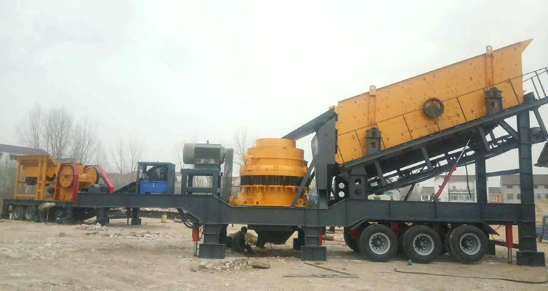 移動式破碎站主破碎設備為破碎機,物料經(jīng)給料機均勻輸送到破碎機內,被破碎機初步破碎以后由圓振動篩構成閉路系統(tǒng),實現(xiàn)物料的循環(huán)破碎,符合粒度要求的物料由輸送機輸出,從而達到生產(chǎn)目的。移動式破碎站還可以根據(jù)實際生產(chǎn)需要去除圓振動篩,而直接對物料進行初步破碎,然后配合其他破碎設備進行具體的操作,方便、靈活。